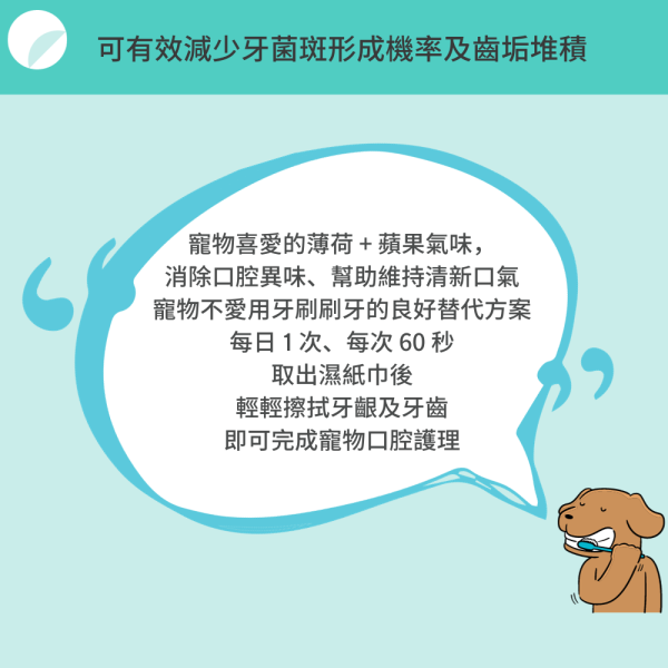 東西不錯,家裡的毛孩從開始很牴觸到現在很愛用濕紙巾刷牙,用了1個月牙齒白皙傑亮👍已經介紹給朋友。